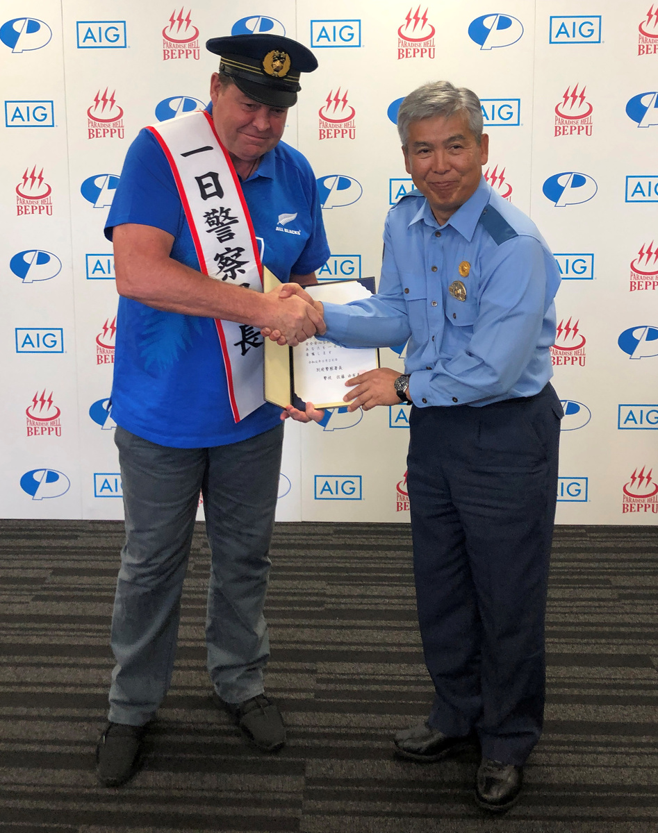 Hansen, who was decorated with a scarf and cap by Beppu's regular police chief Yufumi Sato, said: "Very humbling to be recognised as the chief of police of Beppu for the day.