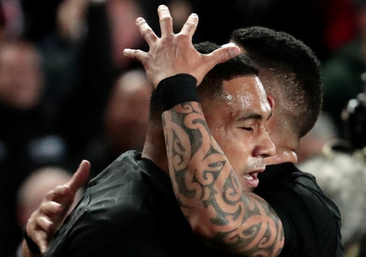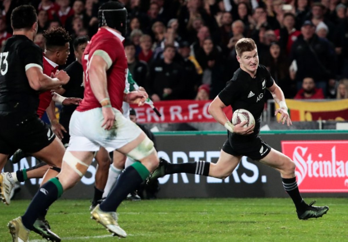 A Beauden Barrett intercept as the Lions attacked the home line got the All Blacks down the other end of the pitch and the rookie centre was on hand to pounce when Barrett's crosskick was knocked back by fullback Jordie Barrett.