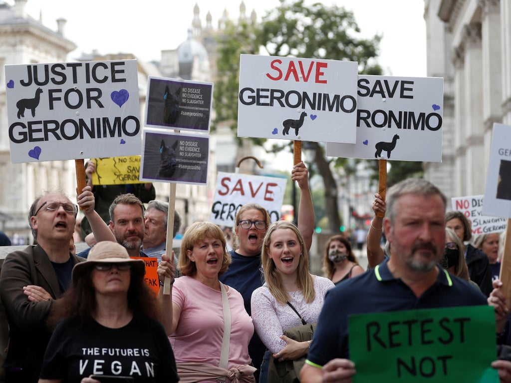 Scores of people demonstrated on Monday outside the Department for Environment, Food and Rural Affairs (Defra) office in Westminster against the decision to kill the eight-year-old alpaca.