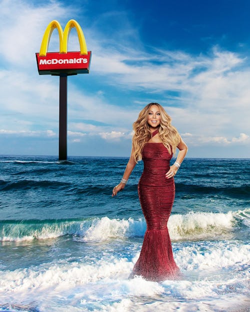 Perhaps intending to clumsily proliferate a meme (or subtly warn us about the incoming climate apocalypse), McDonald’s own announcement of the meal included an inexplicably atrocious promotional photo of Carey stuck in the ocean.