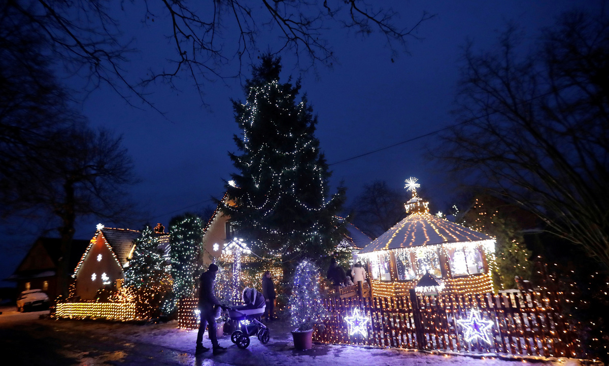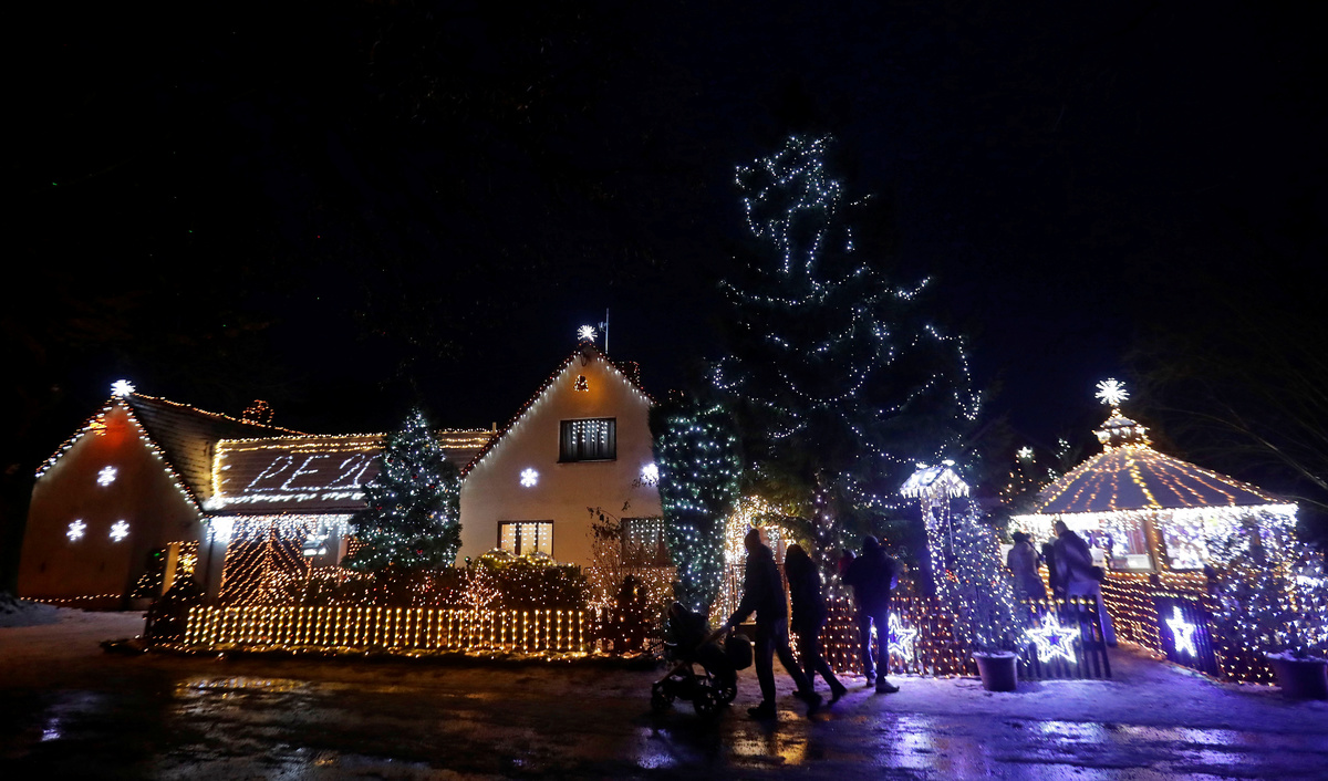 People enter a private house decorated with Christmas lighting in the village of Chotovice near the town of Litomysl, Czech Republic, December 18, 2018. REUTERS/David W Cerny