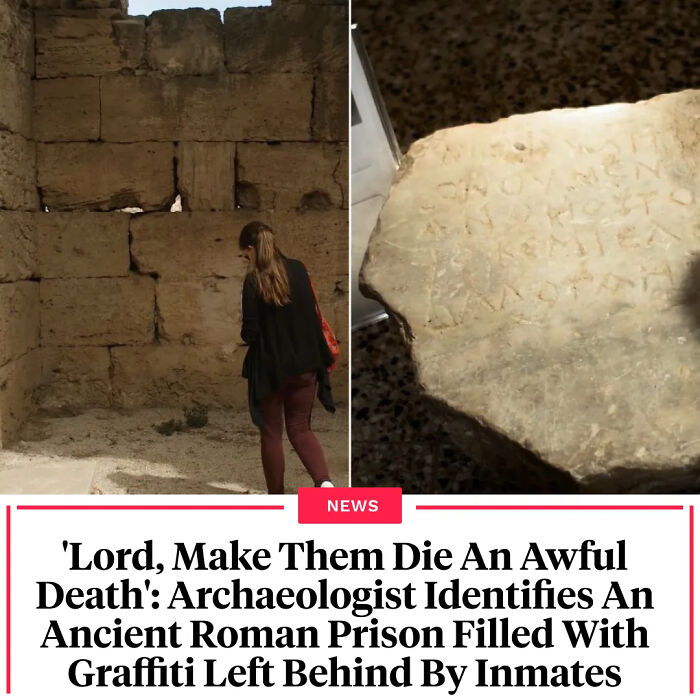 An archaeologist studying the ancient Roman Forum in Corinth, Greece, just identified one of the buildings within it as a prison. Matthew Larsen examined historical records from the excavation of the site in 1901 and graffiti found on the floor to determine that it is likely one of just a few surviving prisons from the Roman world. The graffiti, which is written in Greek, was seemingly carved by inmates — and much of it includes curses against the people who imprisoned them. One inscription reads, "May the fortune of those who suffer in this lawless place prevail. Lord, do not show mercy on the one who threw us in here," while another simply says, "Lord, make them die an awful death."