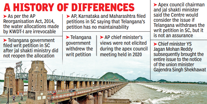 AMARAVATI: The AP government has urged the Centre not to entertain any request by Telangana for reallocation of the Krishna river water. The state said the allocations made by the Krishna Water Disputes Tribunal (KWDT-I) were final and there was no provision to refer these allocations either to the KWDT-II or a new tribunal.