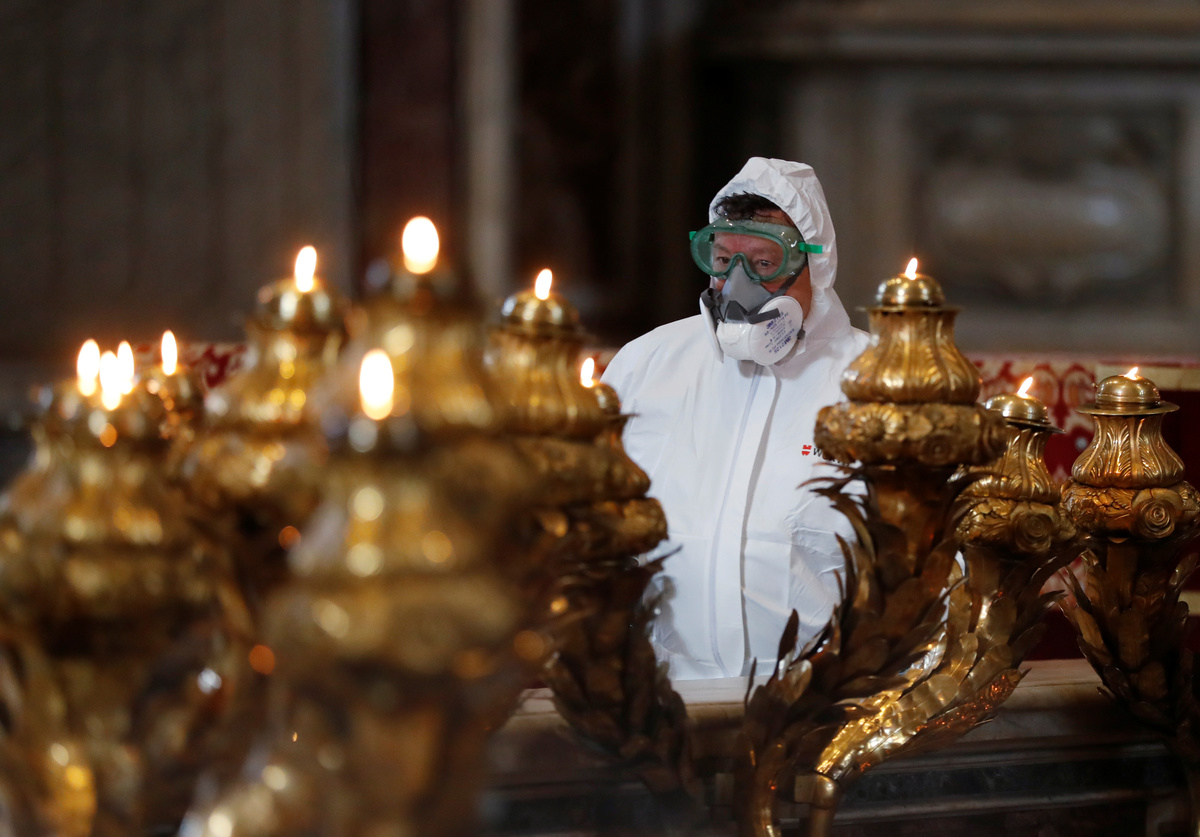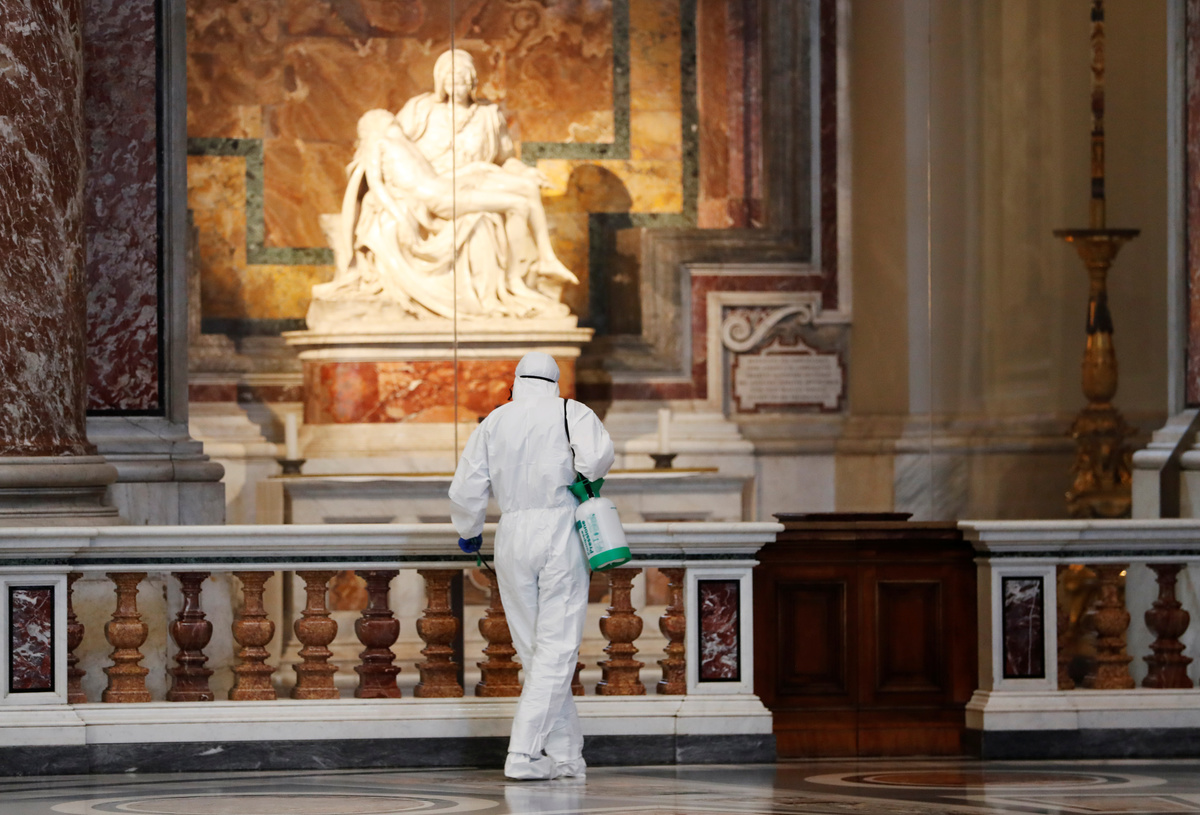 Almighty cleanup: St. Peter's in Rome gets coronavirus scrub-down