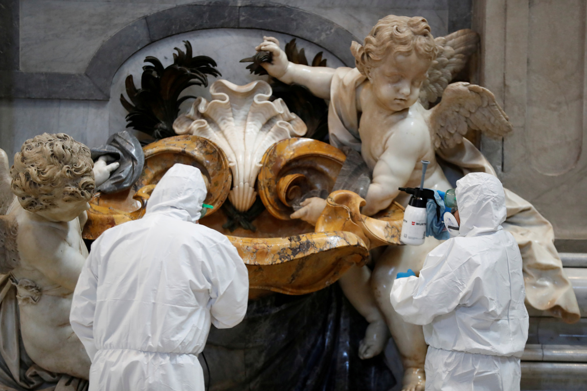 Next time you fret about sanitising your desk or kitchen counter because of the coronavirus, spare a thought for the workers whose task on Friday was to wipe down St. Peter's Basilica.