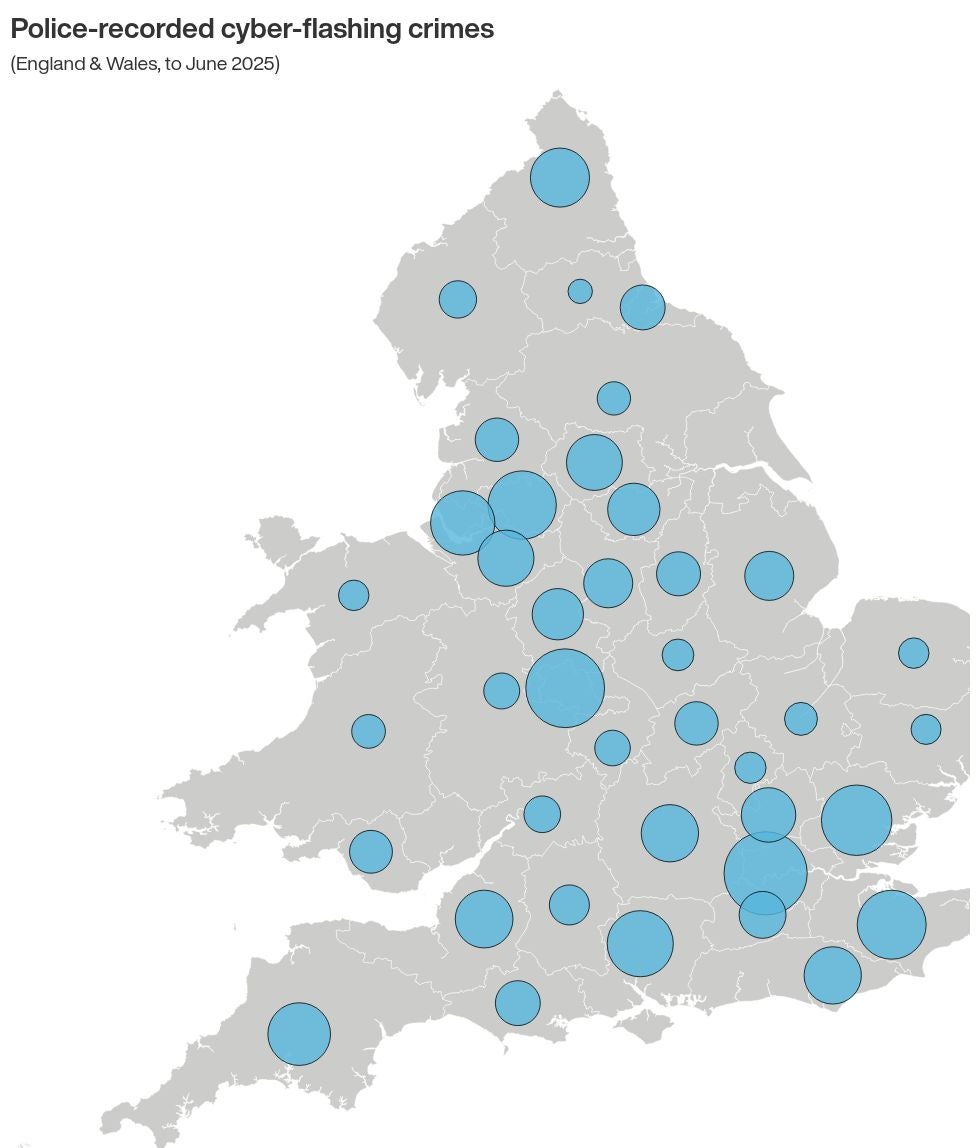 Although cyber-flashing is a considered a violence against women and girls (VAWG) offence, the figures include crimes against all genders.