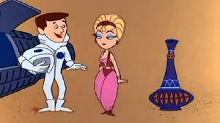 In popular culture in the 1960s, women were often associated with magic and emotion rather than science and technology. The sitcom I Dream of Jeannie depicted the relationship between a US astronaut and a magical djinn or genie, imaginatively named Jeannie. NASA was an advisor for the series, which mirrored real space events. Jeannie represented seductive oriental femininity in opposition to the strait-laced, masculine, all-American astronauts.