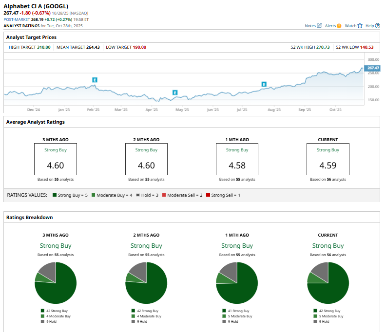 Among the 56 analysts covering GOOGL stock, the consensus is a “Strong Buy.” That’s based on 42 “Strong Buy” ratings, five “Moderate Buys,” and nine “Holds.”