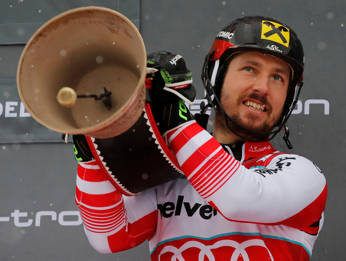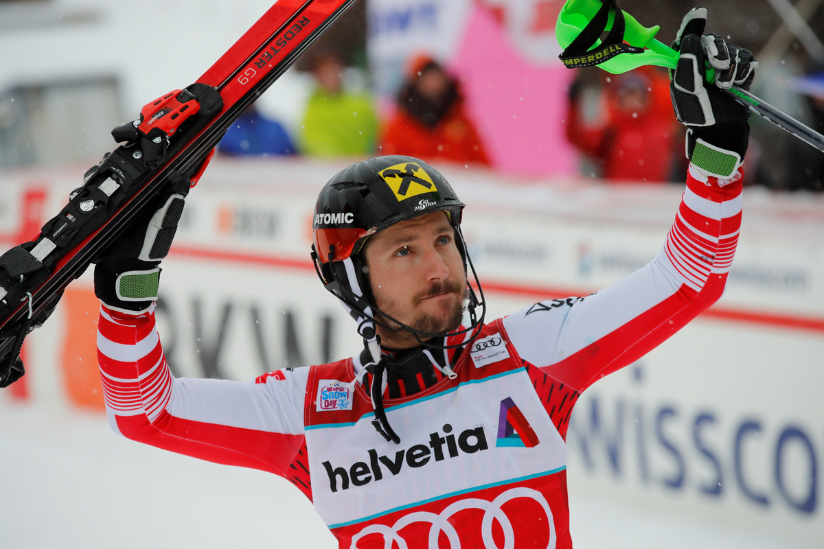En route towards possibly adding to his six other global gold medals in this year's World Championships next month in Are, Sweden, Hirscher's next stop in his World Cup assault will be in the Wengen slalom next Sunday.