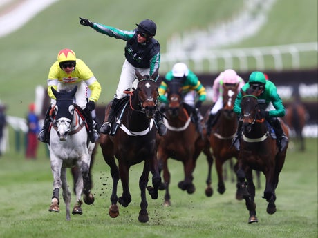 Nicky Henderson’s 11-year-old, who has won the race twice previously as well as the Arkle and the Supreme Novices’ Hurdle, coughed after exercise on Monday.