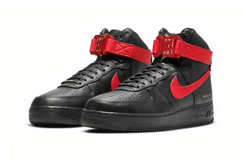 Alyx is bringing back its Nike Air Force 1 High with its signature rollercoaster buckle — and it’s doing so with two “University Red” color schemes you can’t possibly miss. The heavily fastened sneaker makes its return this week in two red and black color schemes that serve as inverses of each other.