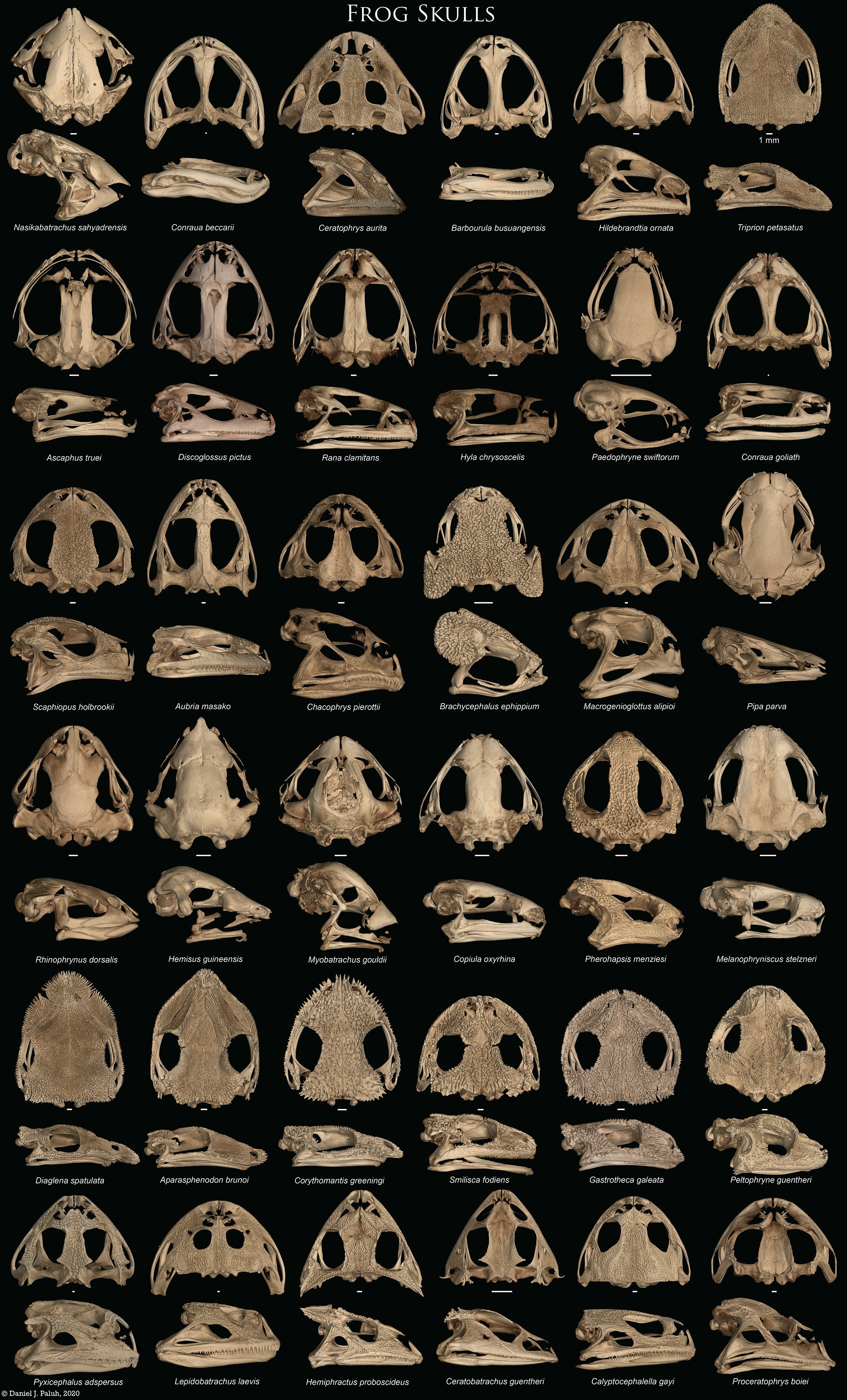 "Some of the weirdest skulls are found in frogs that eat birds and mammals, use their heads as a shield, or in a few rare cases, are venomous. Their skulls show how strange and diverse frogs can be."
