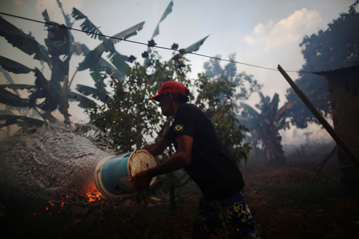 Residents and firefighters in northwestern Brazil are battling fires that are raging in the Amazon, destroying farmland and threatening their homes.