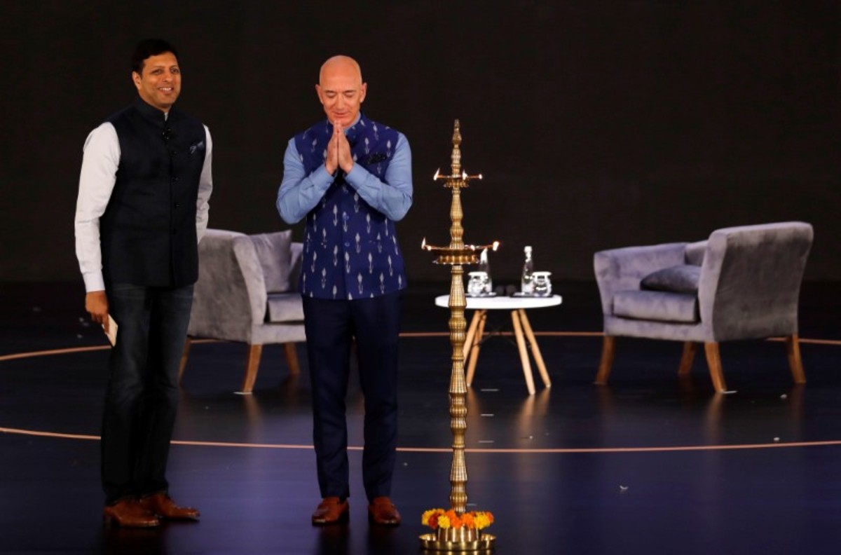 Speaking at a company event at a New Delhi stadium which Amazon described as "a first-of-its-kind mega summit" bringing together more than 3,000 small businesses, Bezos praised India and said Amazon was committed to being its long-term partner.