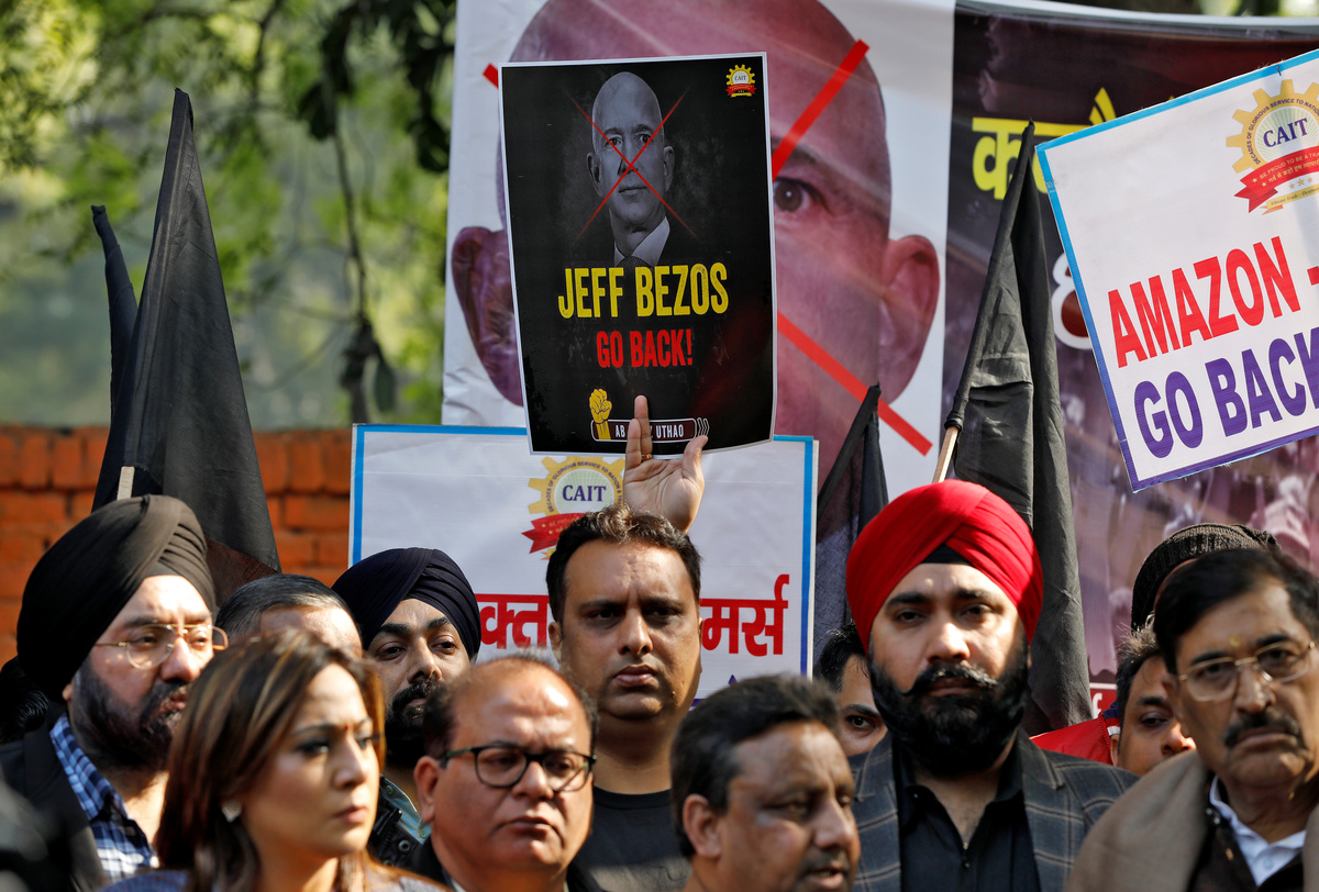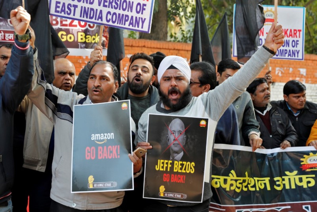 The Confederation of All India Traders, a group representing roughly 70 million brick-and-mortar retailers, has said it will protest in 300 cities during Bezos' visit.