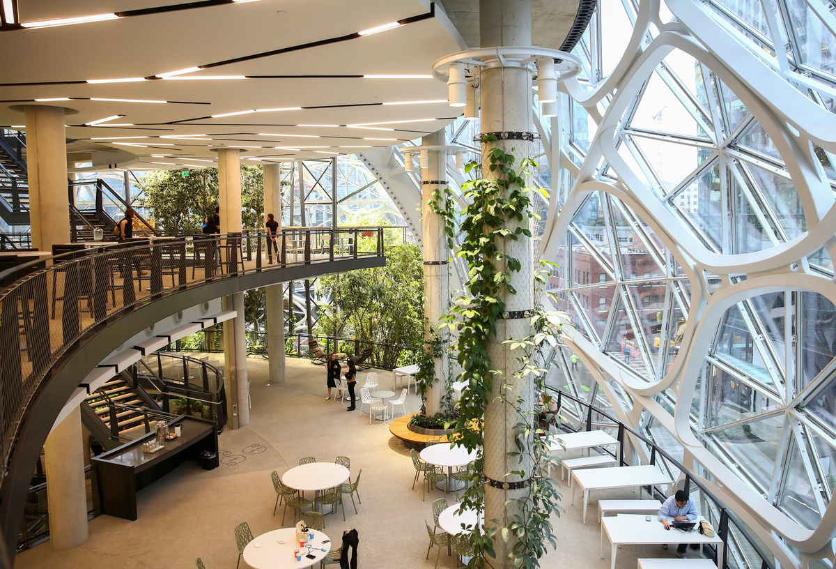The second and third floors of the new Amazon Spheres are seen during a grand opening event at Amazon's Seattle headquarters in Seattle, Washington, U.S., January 29, 2018. REUTERS/Lindsey Wasson