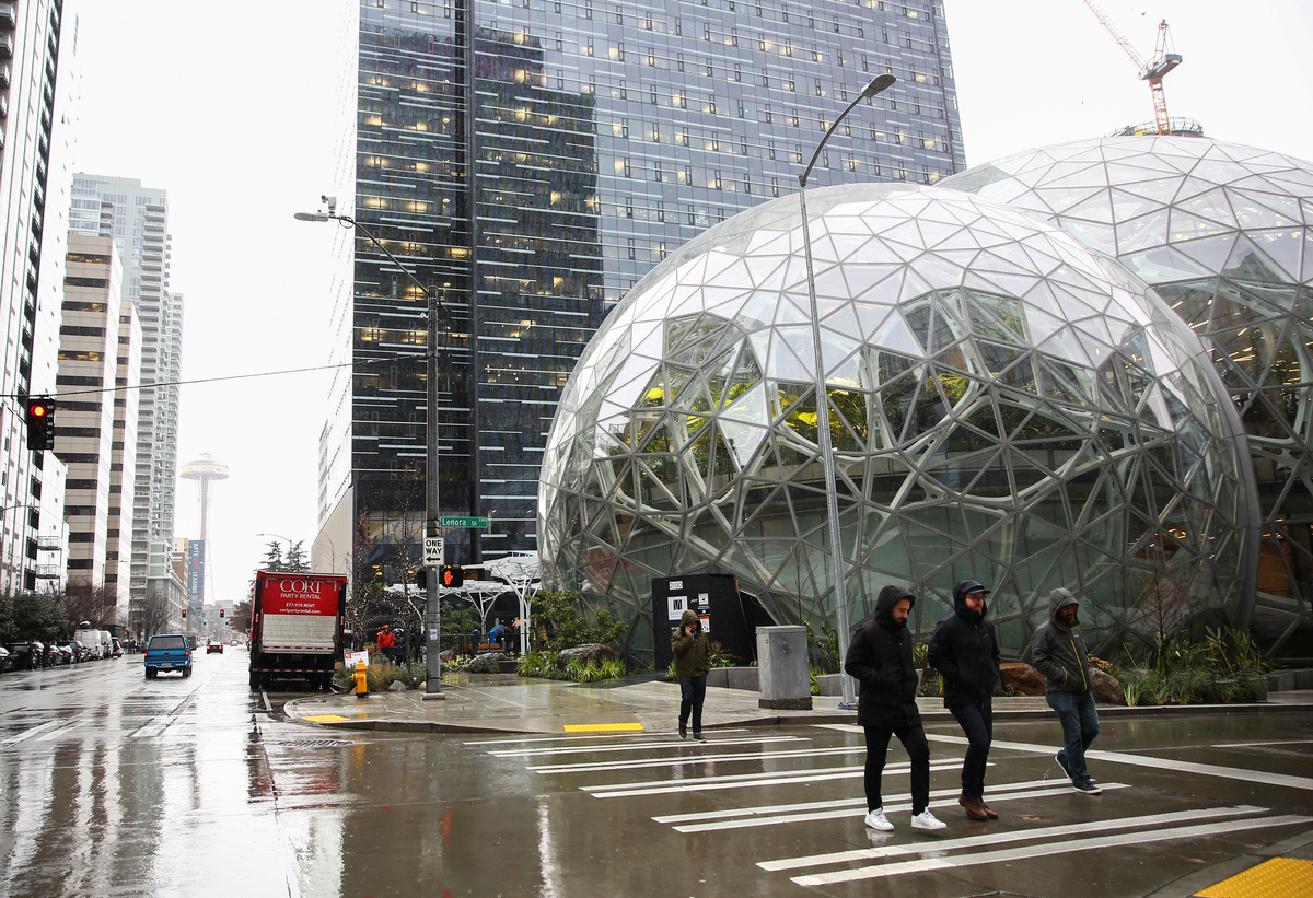 The Amazon Spheres are seen from 6th Avenue at Amazon's Seattle headquarters in Seattle, Washington, U.S., January 29, 2018. REUTERS/Lindsey Wasson