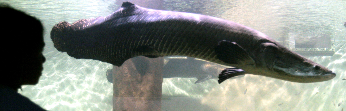The fish, also known as pirarucu, gets up to 10 feet (3 meters) long and weighs up to 440 pounds (200 kg). Arapaima, a fish that can breathe air and survive up to a day outside of the water, inhabits rivers in Brazil, Guyana and Peru infested with piranhas, known for razor-sharp teeth, incredible bite strength and deadly feeding frenzies.
