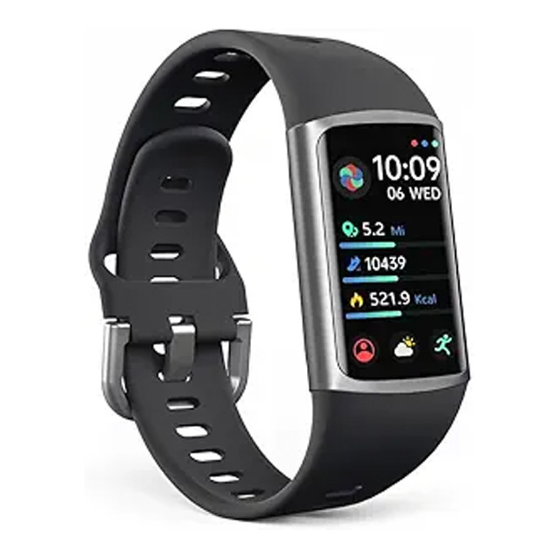 This feature-packed fitness tracker will help keep you on task in the gym and at the office. Its slim design makes it an attractive and unassuming accessory. The watch can monitor steps, heart rate, blood pressure, blood oxygen, sleep, and calories burned. It also has Bluetooth connectivity and can show you incoming text messages, phone call info, and app notifications. You can also take the watch swimming, as it's rated IP68 waterproof. Additionally, this smartwatch has a find-my-phone function, remote photo-taking, and an alarm clock. You have four colors to choose from as well.