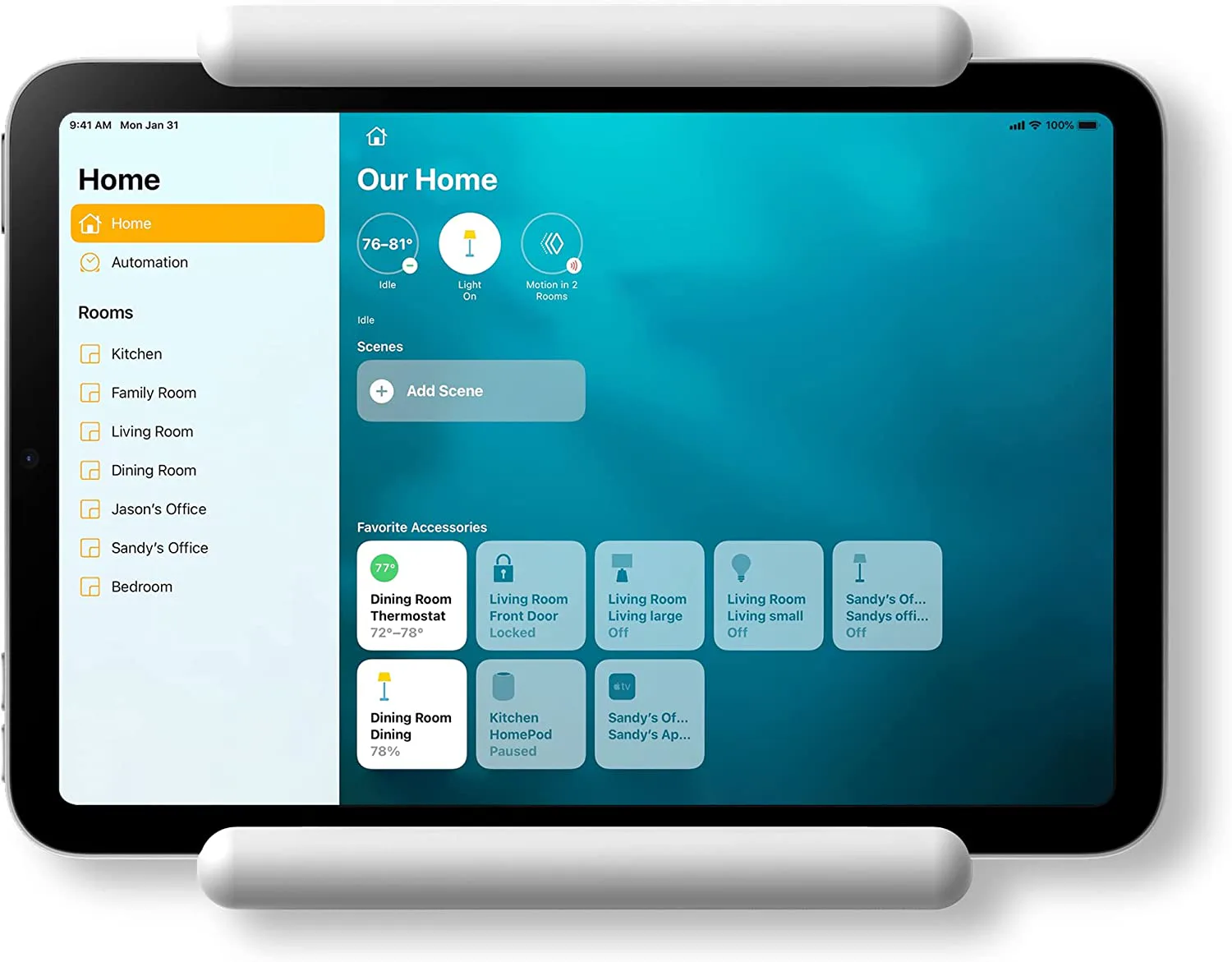 One smart way to keep your tablet secure and safe at home is to mount it on this wall mount. The mount is compatible with most iPads, including iPad Air, and comes in white, dark gray, or black. Keep the scratch-resistant silicone mount in place on your wall using the included hardware.
