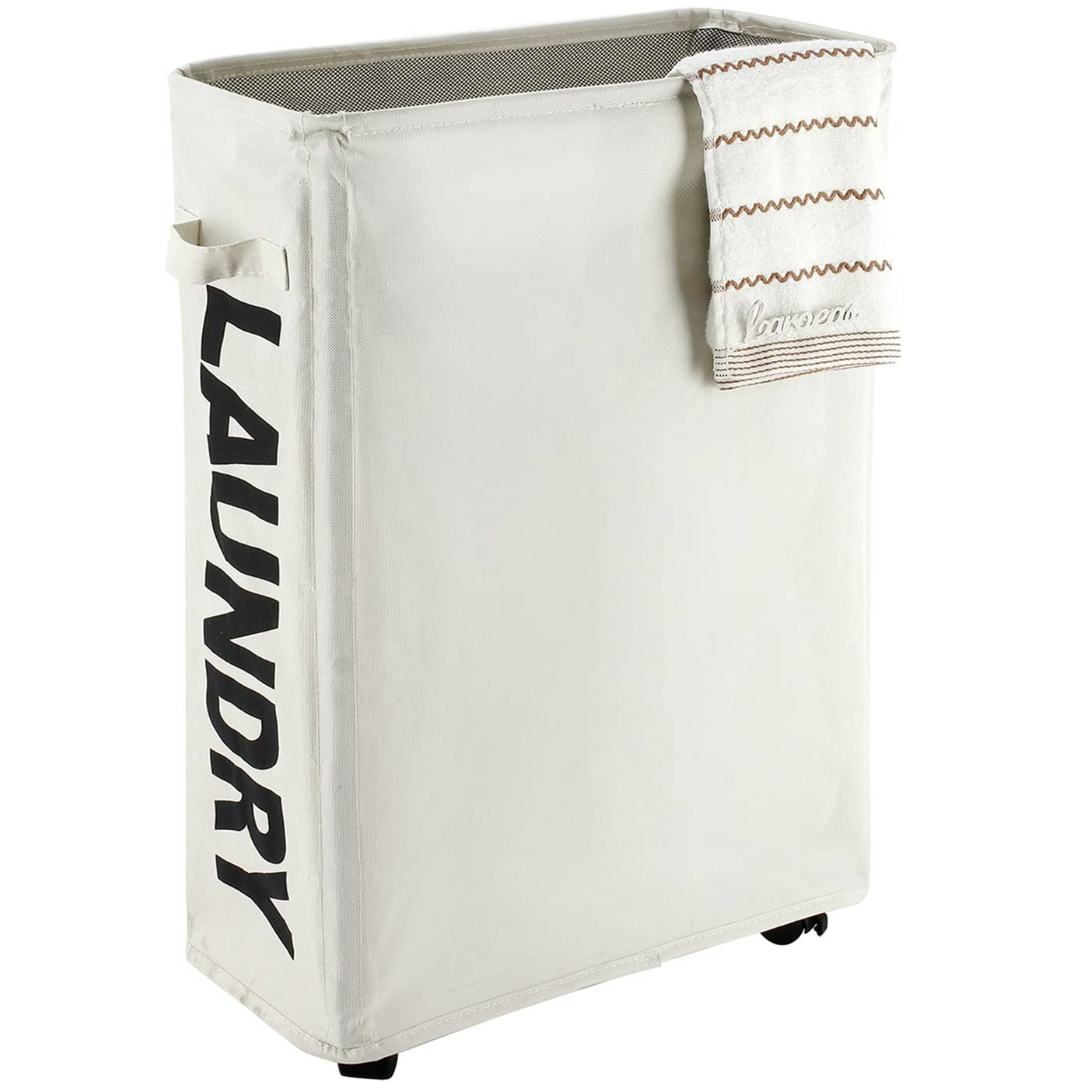 This compact laundry basket you can wheel to the laundry room
