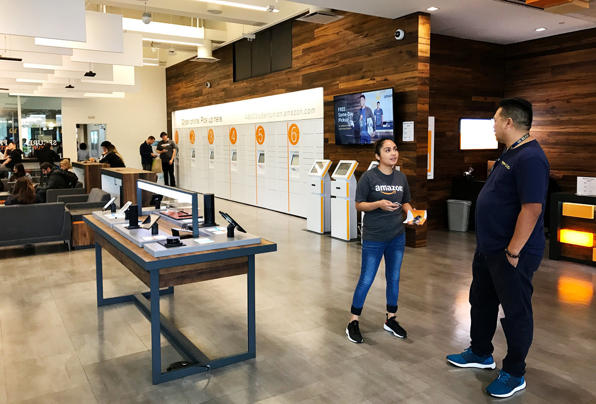 The world's largest online retailer has launched 'Instant Pickup' points around five college campuses, such as the University of California at Berkeley, it said on Tuesday. Amazon has plans to add the program to more sites by the end of the year.
