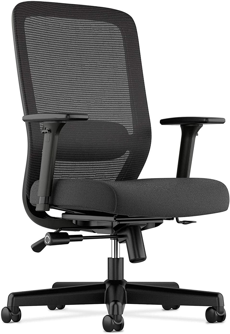 If your office needs an upgrade, this chair might be a great way to level up. This chair is thoughtfully designed with adjustable lumbar support and an ergonomic seat design that aligns your legs and hips for all-day comfort. You can move the seat backward or forward and adjust the seat height as well as how far you want to recline. And finally, the mesh back keeps the air flowing to keep you cool and comfy.