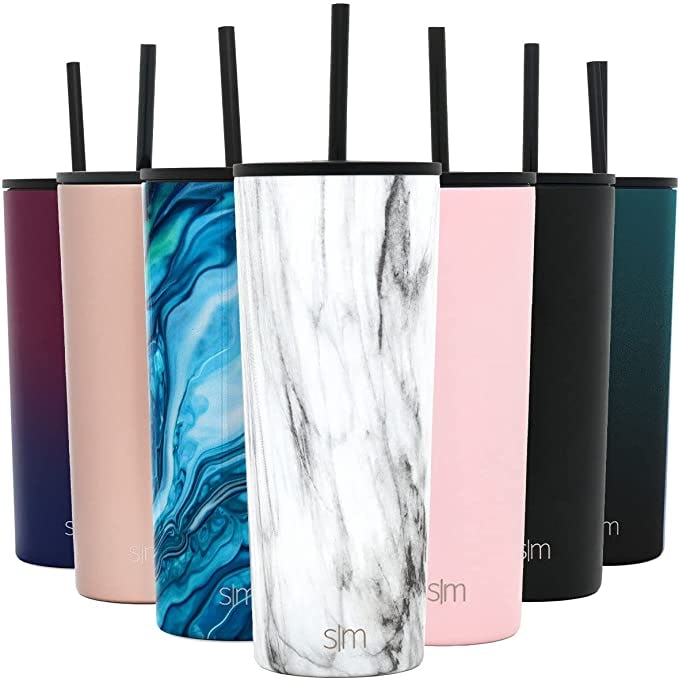 This tall, 24-ounce, double-wall, vacuum insulated tumbler has two lids to handle whatever beverage takes you through your day. The flip-top sipping lid seals tight so you can put coffee, water, or your daily brew in and sip away. Then close the lid and toss the tumbler into your bag. It seals leak-free! The straw lid is great for smoothies and on-the-go sipping. It comes in 37 colors and patterns so you can make it your own.