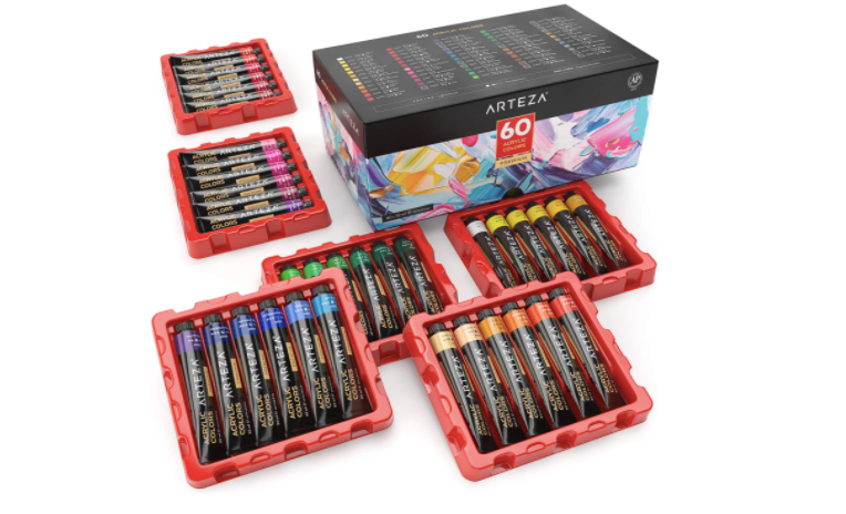 Arteza Acrylic Paint, Set of 60 Colors/Tubes