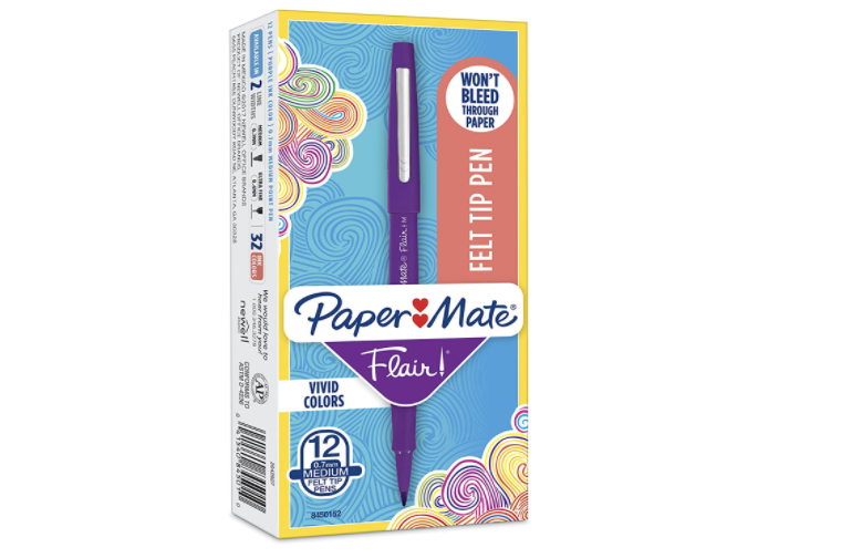 Paper Mate Flair Felt Tip Pens, Medium Point (0.7mm), Purple, 12 Count