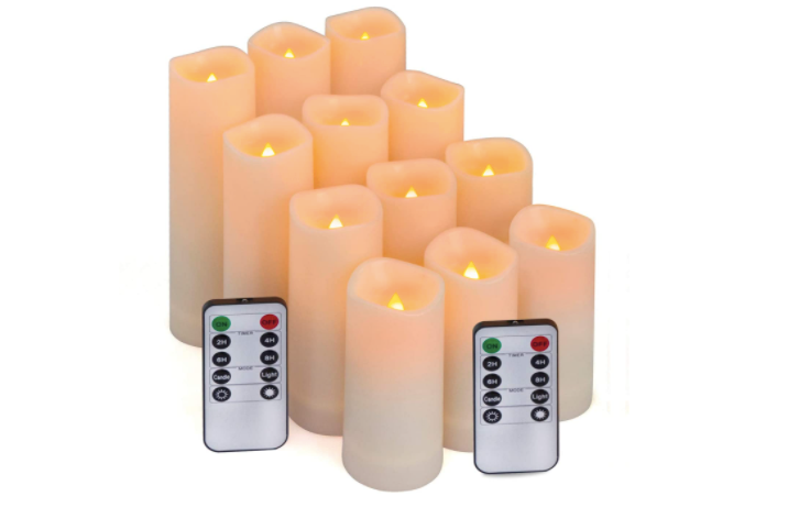The ambiance of pillar candles is indisputable, but the risk factor of lighting up a dozen candles is not small! That’s why this set of plastic LED candles can be such a great substitution when you need to set the mood.