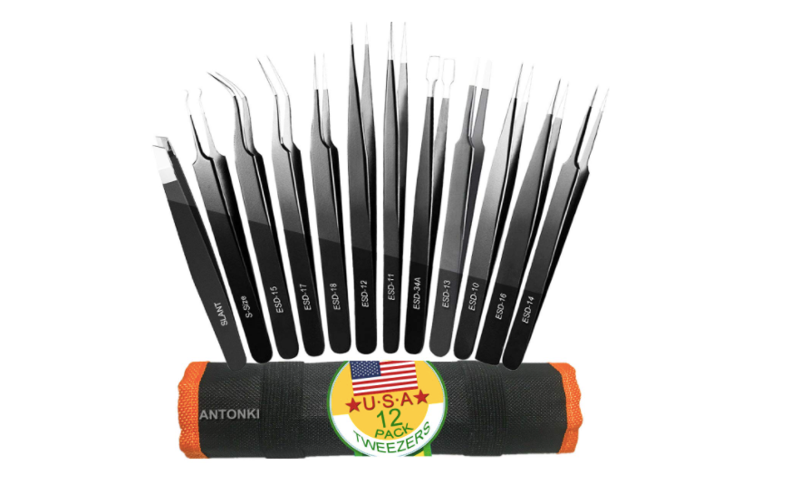 Featuring 12 specialized tweezer types in a handy carrying case, these pluckers should cover all of your grooming or crafting needs possible. They’re made with strong, anti-static metal and well packed with plastic tip covers to keep them safe in transit.