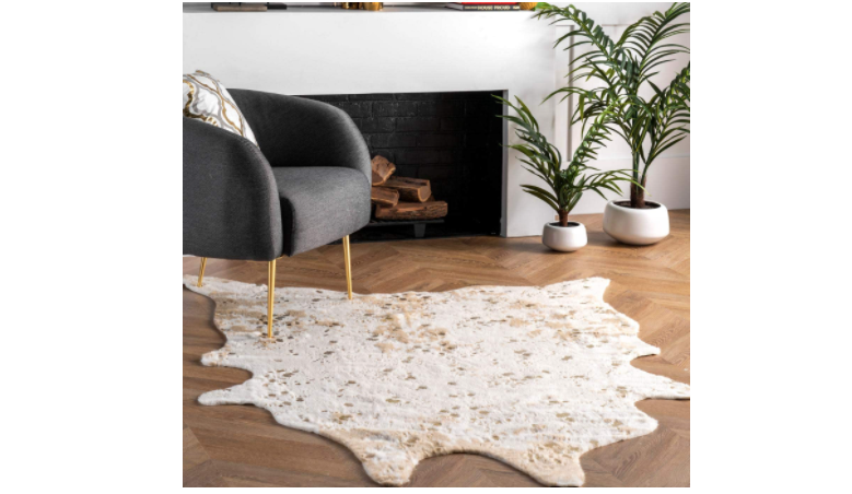 nuLOOM Iraida Faux Cowhide Shaped Rug, 3' 10" x 5', Off-white