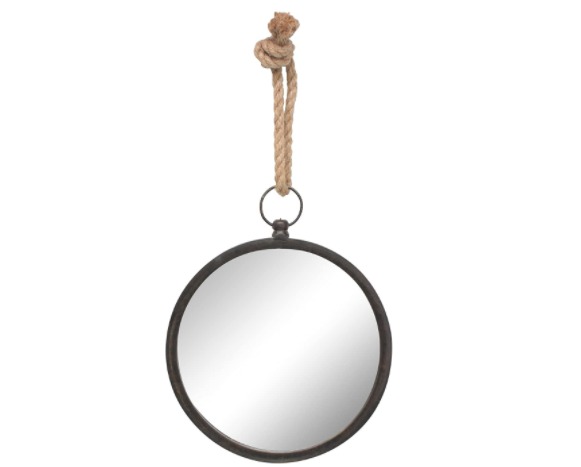 Stonebriar Round Metal Mirror for Wall with Nautical Rope Hanging Loop, SMALL, Brown