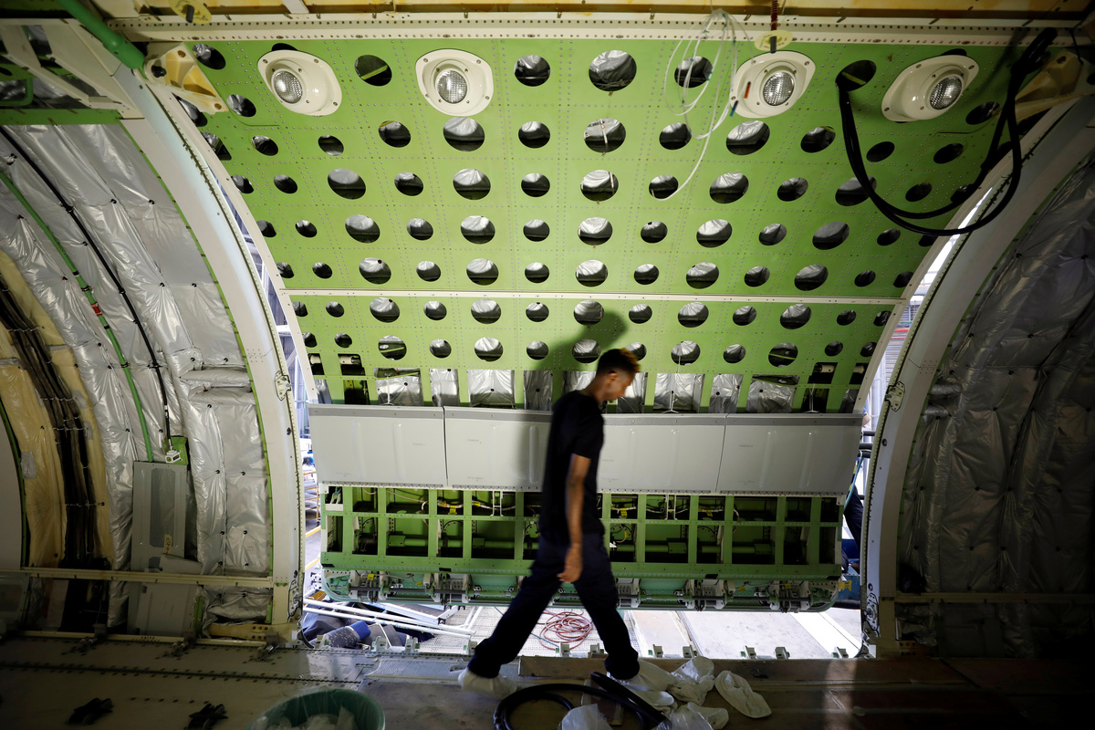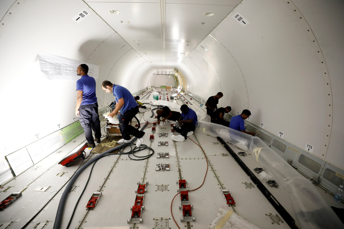 Labourers work inside a passenger plane as they convert it into a cargo plane at Israel Aerospace Industries site in Ben Gurion International Airport, Lod, Israel July 3, 2019. REUTERS/Amir CohenLabourers work inside a passenger plane as they convert it into a cargo plane at Israel Aerospace Industries site in Ben Gurion International Airport, Lod, Israel July 3, 2019. REUTERS/Amir CohenAirplane seats are seen near large garbage containers after they were removed from passenger planes that are being converted into cargo planes at Israel Aerospace Industries site in Ben Gurion International Airport, Lod, Israel July 3, 2019. Picture taken July 3, 2019. REUTERS/Amir CohenA labourer poses for a photograph next to a passenger plane as it is converted into a cargo plane at Israel Aerospace Industries site in Ben Gurion International Airport, Lod, Israel July 3, 2019. Picture taken July 3, 2019. REUTERS/Amir CohenA labourer works inside a passenger plane as it is converted into a cargo plane at Israel Aerospace Industries site in Ben Gurion International Airport, Lod, Israel July 3, 2019. Picture taken July 3, 2019. REUTERS/Amir CohenThe interior of a passenger plane is seen while it is converted into a cargo plane at Israel Aerospace Industries site in Ben Gurion International Airport, Lod, Israel July 3, 2019. Picture taken July 3, 2019. REUTERS/Amir CohenLabourers work on a passenger plane as they convert it into a cargo plane at Israel Aerospace Industries site in Ben Gurion International Airport, Lod, Israel July 3, 2019. REUTERS/Amir CohenLabourers work inside the cockpit of a passenger plane as they convert it into a cargo plane at Israel Aerospace Industries site in Ben Gurion International Airport, Lod, Israel July 3, 2019. REUTERS/Amir Cohen