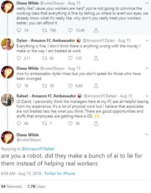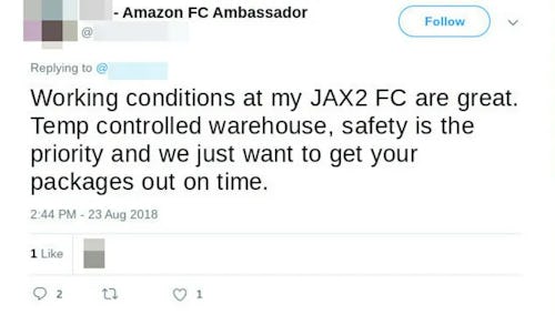 The ambassador program, which began in 2018, was started for the express purpose of undermining employee testimonies about poor warehouse working conditions. In the interim, those conditions have certainly not improved.