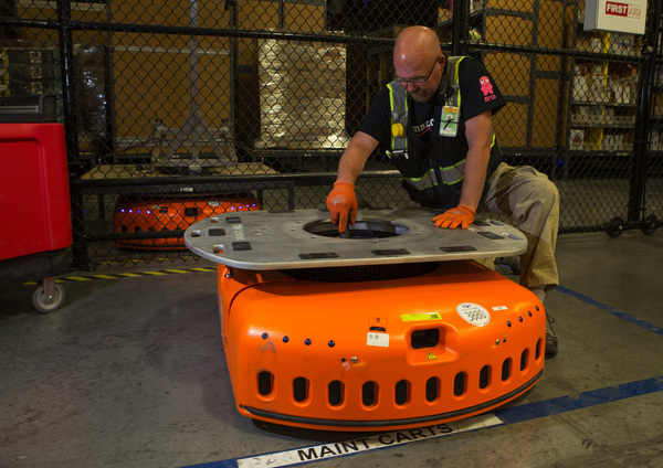Amazon staffers call it the "graduation ceremony," and it takes place several times a day. "It's a proud-mama moment," an Amazon spokeswoman said, during the first visit to the facility by a reporter since the e-commerce giant bought the former Kiva Systems in 2012. So far this year the company has graduated more than 55,000 robots.