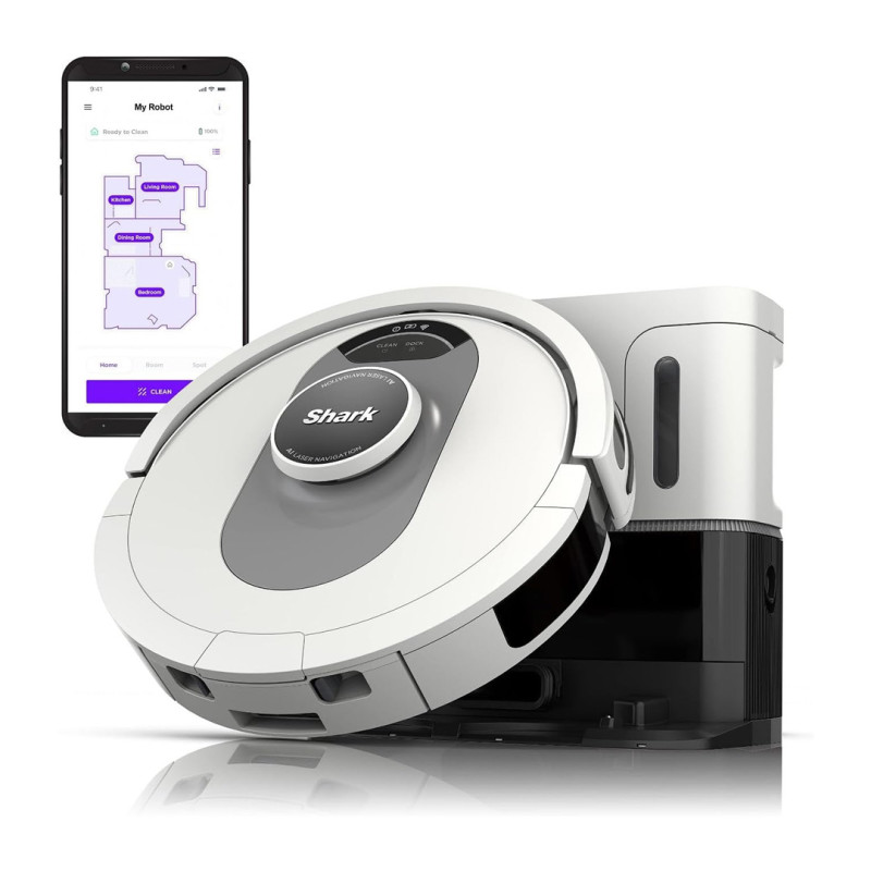 This Robot Vacuum has a Matrix Clean feature that maps the room, enhancing its ability to clean every corner of the floor with minimal coverage gaps. It also has a bagless self-emptying base, a self-cleaning brush roll, and voice control via Shark's connected app.