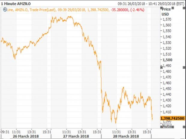 On Thursday morning, Amazon’s shares were down more than 2 per cent shortly after the stock market open taking losses for the week to well over 6 per cent.