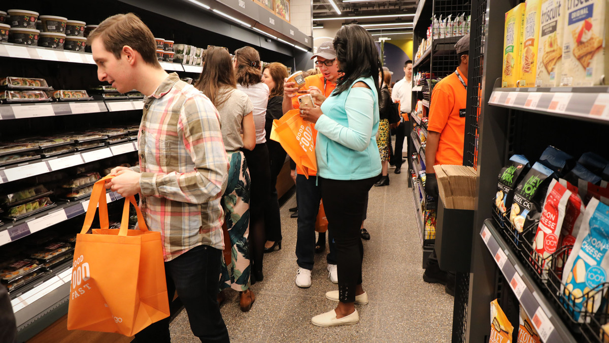 Patrons could choose items and place them in their own bags or an Amazon Go bag as they shopped. When they were finished, they walked through the exit gate and were electronically charged for the items they took.