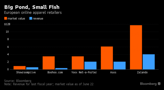 Zalando, Asos and Boohoo.com, which targets young women by speeding designs from fashion runways to its online outlets, all reached record highs in early June. Zalando, with a 1 per cent share of the European fashion market, has said profit margins may shrink this year as it spends on countering slowing customer growth.