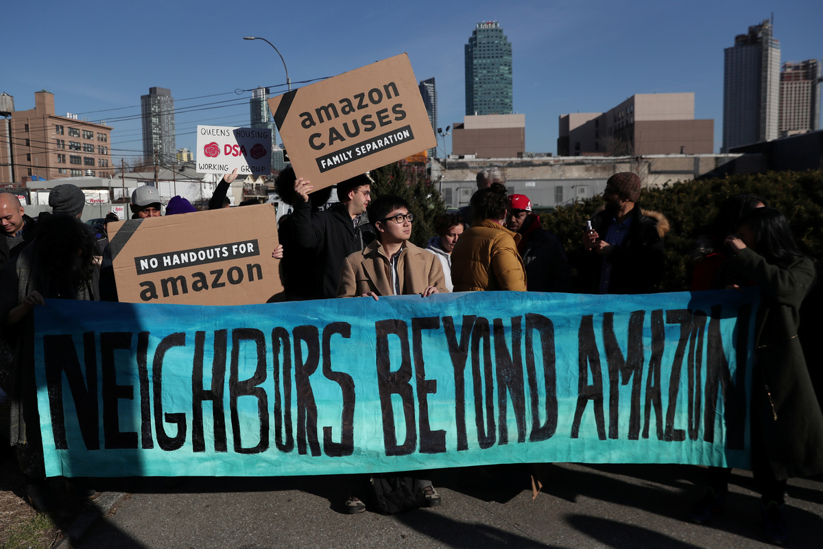 Some New Yorkers mounted protests after the deal was announced, angered by the $2.8 billion in incentives promised to Amazon and fearing further gentrification in a neighborhood once favored by artists looking for cheap studio space.