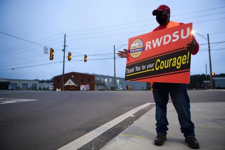 Both Beringer and Connelly are Black, like most of the workers in the warehouse. That was a crucial fact for union organizers. The just-concluded campaign pitched the union drive as an extension of the civil rights movement, a fight for dignity just as vital as the battle to dismantle Jim Crow. The Birmingham chapter of Black Lives Matter threw itself into canvassing; campaigners who arrived to help, such as U.S. Rep. Terri Sewell and anti-poverty campaigner Rev. William Barber, made the linkage explicit.