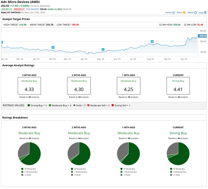 Earlier, AMD stock got a considerable boost from a landmark partnership with OpenAI. This multibillion-dollar agreement could be transformative for AMD and its product roadmap. Per the deal, AMD will supply OpenAI with up to six gigawatts of Instinct GPUs, its high-performance accelerators designed for AI workloads, beginning in the second half of 2026. These next-generation MI450 chips will power OpenAI’s data centers, positioning AMD as a credible alternative to Nvidia (NVDA) in the increasingly competitive AI hardware landscape.