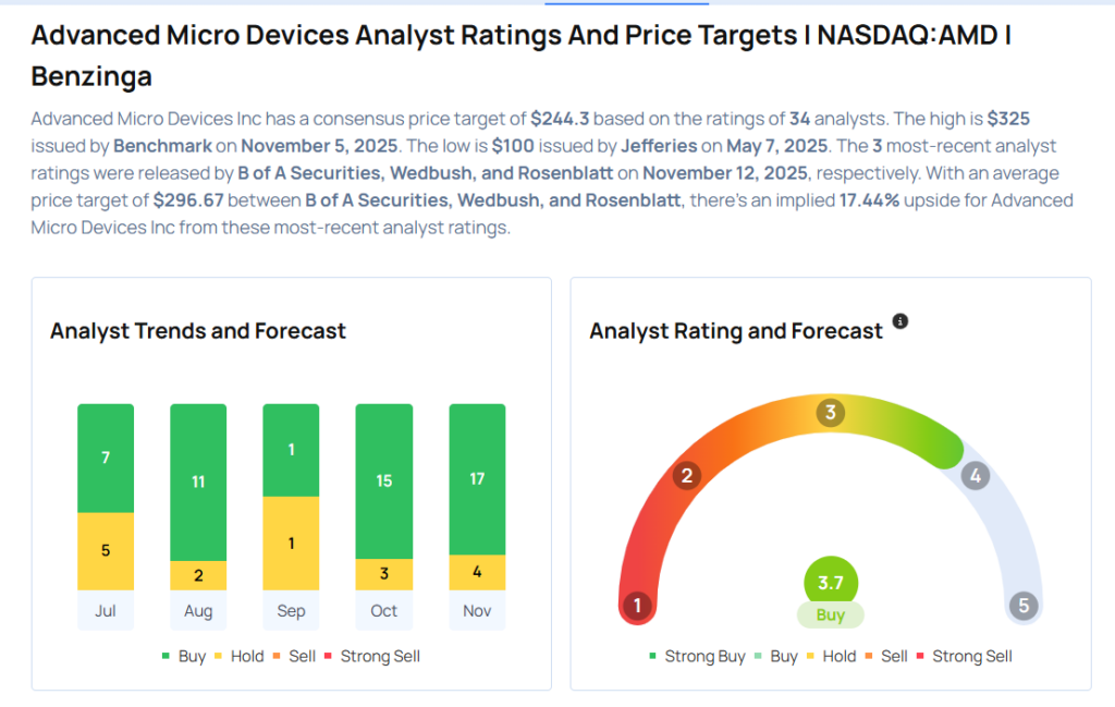 - Mizuho increased Advanced Micro Devices, Inc. (NASDAQ:AMD) price target from $275 to $285. Mizuho analyst Vijay Rakesh maintained an Outperform rating. AMD shares closed at $237.52 on Tuesday. See how other analysts view this stock.
