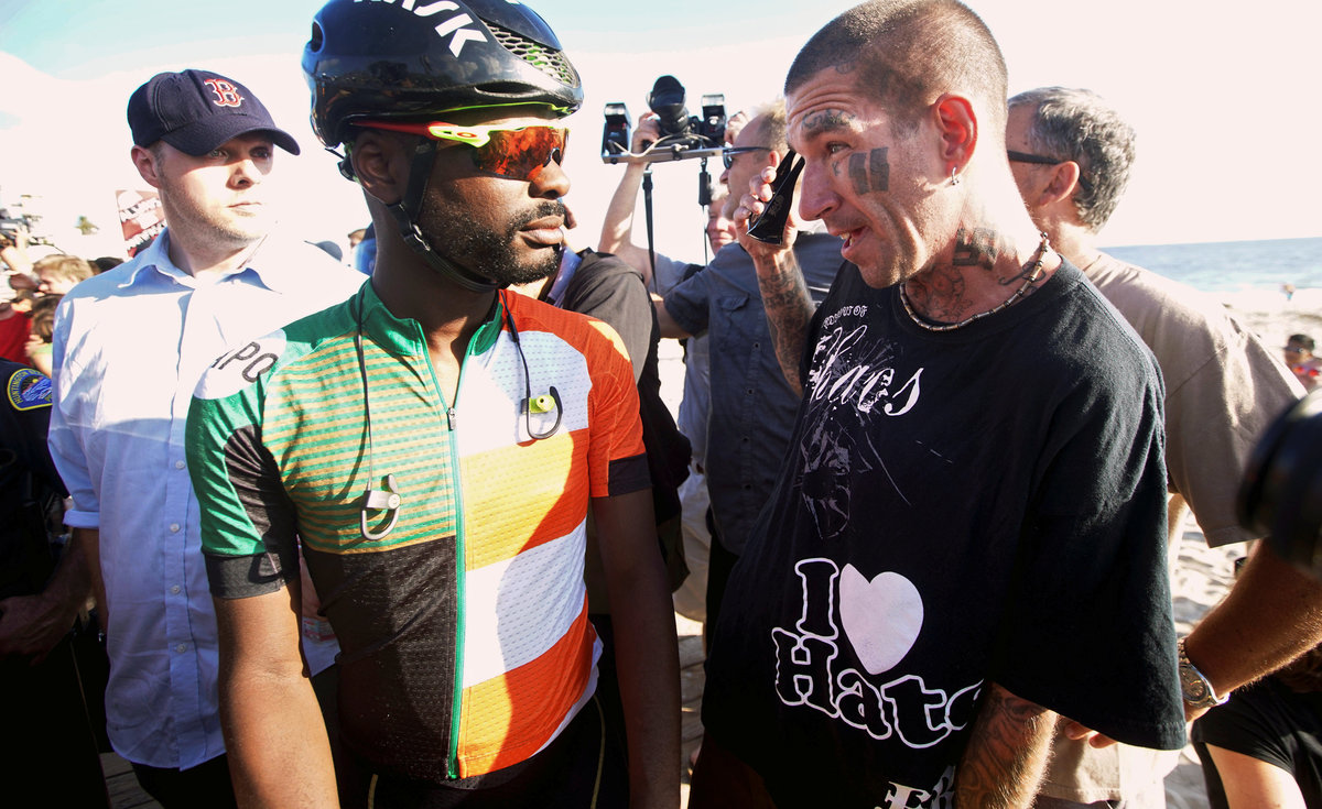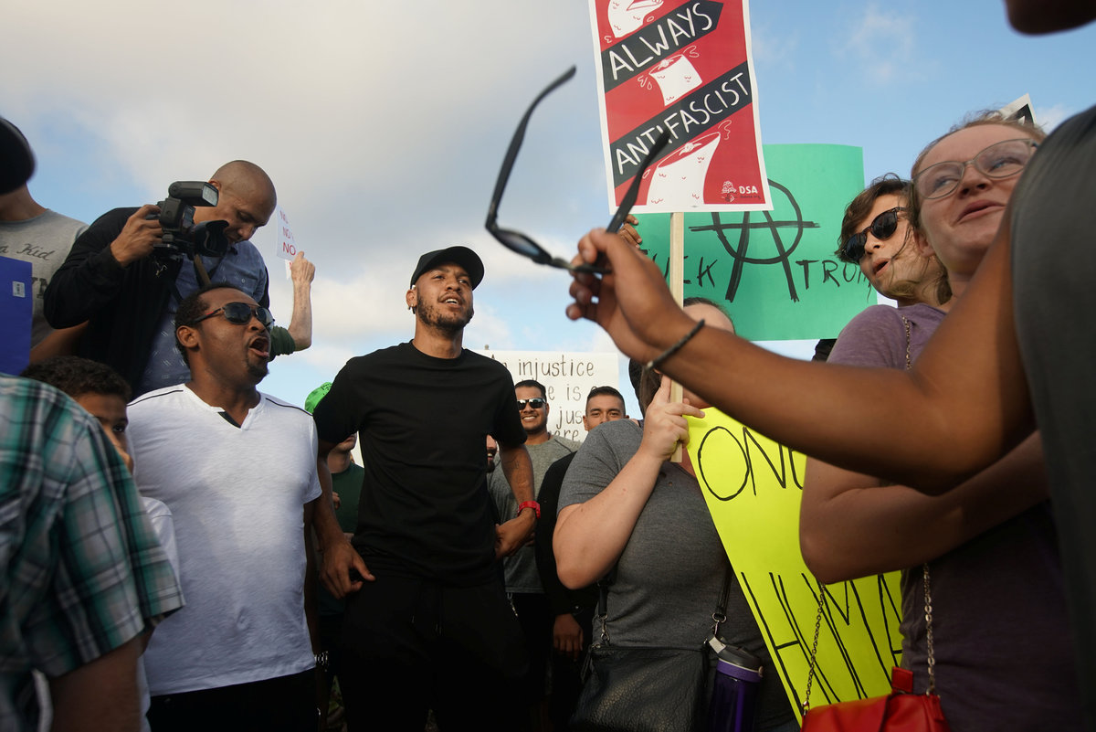 Around 2,500 people in total showed up for what became a raucous shouting match but did not descend into the kind of violence seen at this month's clashes at a white nationalist rally in Charlottesville, Virginia, where one person was killed.