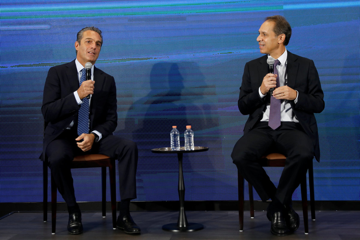 Telcel CEO Daniel Hajj Aboumrad speaks to the media during a news conference at America Movil's corporate offices in Mexico City, Mexico March 14, 2018. REUTERS/Carlos JassoChairman of the Board of Directors of Grupo Carso, Carlos Slim Domit (L), speaks to the media next to Telcel CEO Daniel Hajj Aboumrad during a news conference at America Movil's corporate offices in Mexico City, Mexico March 14, 2018. REUTERS/Carlos JassoChairman of the Board of Directors of Grupo Carso, Carlos Slim Domit, speaks to the media at America Movil's corporate offices in Mexico City, Mexico March 14, 2018. REUTERS/Carlos JassoThe logo of America Movill is seen on a wall at the company's corporate offices in Mexico City, Mexico March 14, 2018. REUTERS/Carlos JassoChairman of the Board of Directors of Grupo Carso, Carlos Slim Domit (L), speaks next to Telcel CEO Daniel Hajj Aboumrad during a news conference at America Movil's corporate offices in Mexico City, Mexico March 14, 2018. REUTERS/Carlos JassoA man takes a picture of the logo of America Movil at the company's corporate offices in Mexico City, Mexico March 14, 2018. REUTERS/Carlos JassoThe logo of America Movill is seen on the wall at the company's corporate offices in Mexico City, Mexico March 14, 2018. REUTERS/Carlos JassoThe logo of America Movil is pictured on the wall of a reception area in the company's corporate offices in Mexico City, Mexico, May 18, 2017. REUTERS/Edgard Garrido