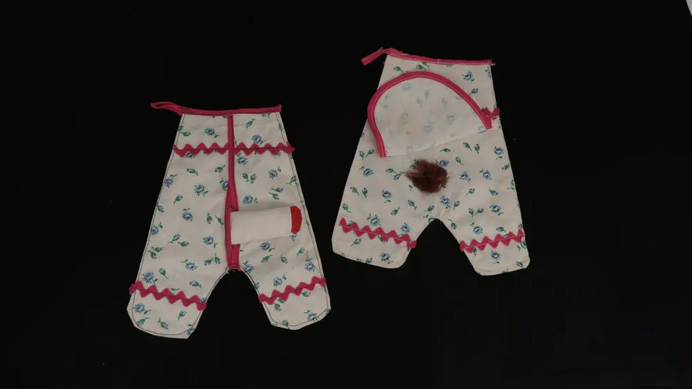 Pornographic potholders tended to come in male and female pairs. This version from the 1960s uses fur for pubic hair.Michael Riordan, CC BY-SA
