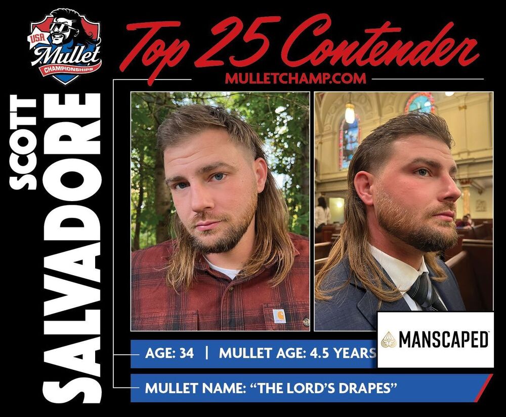 Scott Salvadore of Stillwater, N.Y., has taken the lead in the "Mane Event." He refers to his mullet as "The Lord's Drapes" and has been growing and maintaining it for the past four and a half years. Salvadore is one of 25 finalists who are vying for the glorious "America's Best Mullet" title and a $2,500 prize.