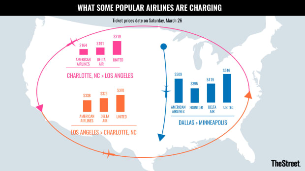 Here is what some popular airlines are charging for an afternoon ticket to Dallas from Minneapolis, according to Expedia, on Saturday, March 26.